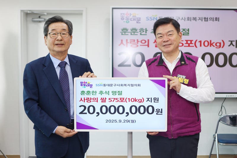µ¿´ë¹®±¸»çȸº¹ÁöÇùÀÇȸ(ȸÀå ¹Ú»óÁ¾)´Â 9¿ù 29ÀÏ µ¿´ë¹®±¸Ã»(±¸Ã»Àå ÀÌÇÊÇü)À» ¹æ¹®ÇØ 10kg »óÁÖ »ï¹é½Ò 575Æ÷(ȯ°¡¾× 2000¸¸ ¿ø »ó´ç)¸¦ ±âŹÇß´Ù.